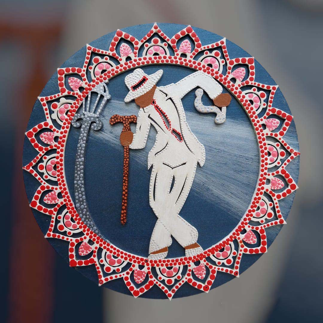 mandala feita a mão em pontilhismo e recorte a laser. Círculo de MDF 3mm, tamanho 20 cm. Inspirada na entidade Zé Pilintra.